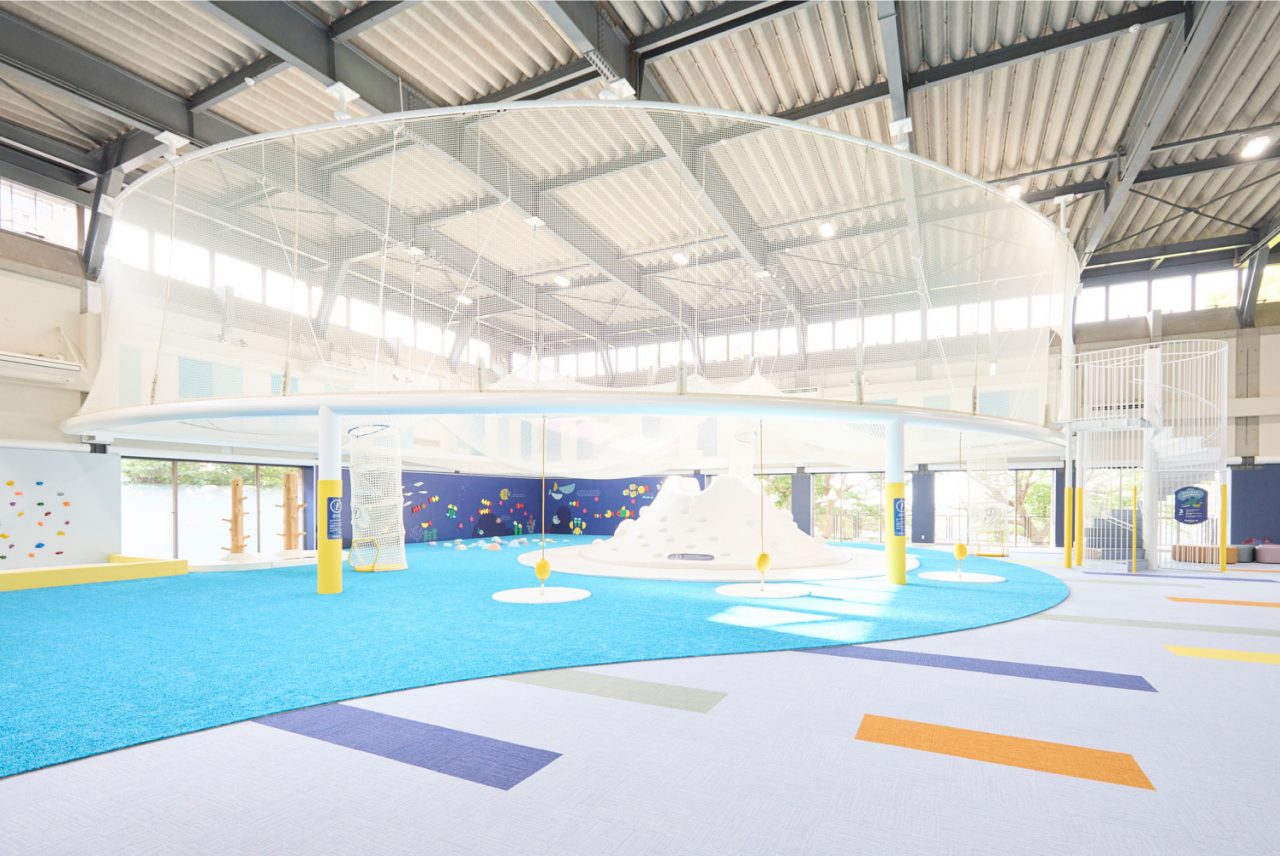 千葉県富津市の背後に鋸山、眼前に海を臨む高台にあるホテル内の体育館が、こどもから大人まで楽しめる遊びの空間「うみのこパーク」に大変身しました。