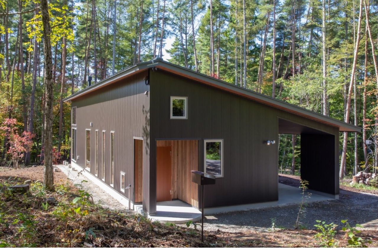 富士見高原の別荘地にたたずむ片流れ屋根の平屋住宅の設計・施工を担当させていただきました。